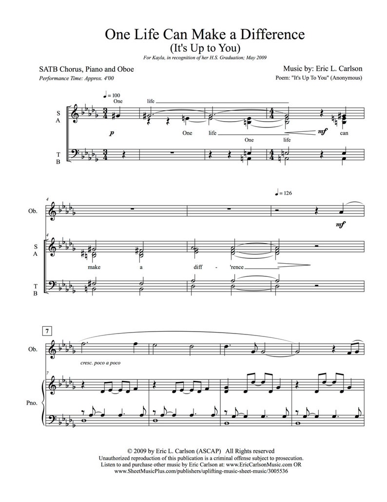 One Life Can Make a Difference SATB Print UNLIMITED COPIES Etsy